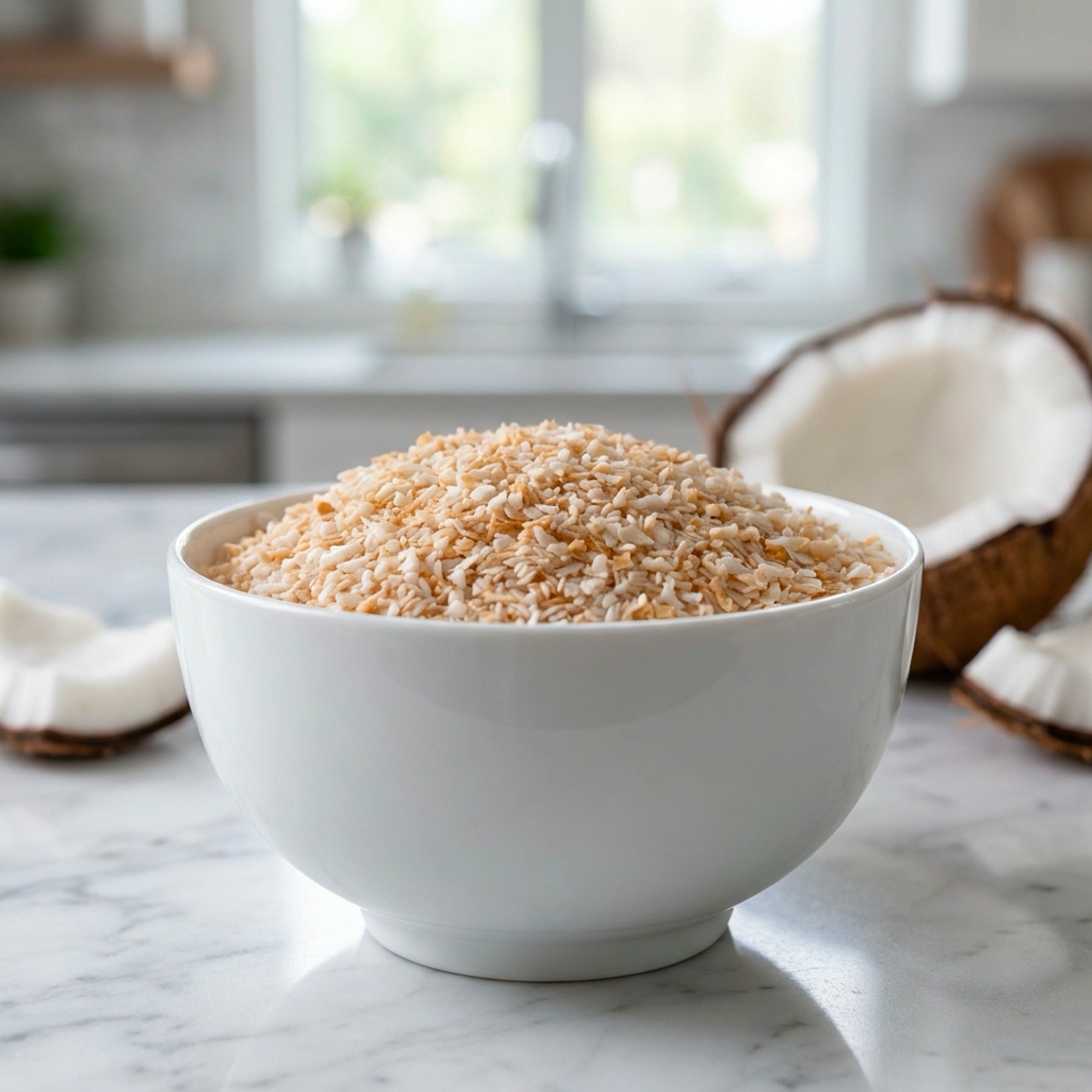 Fine-cut toasted coconut chiplets lightly sweetened and salted for balanced flavor.